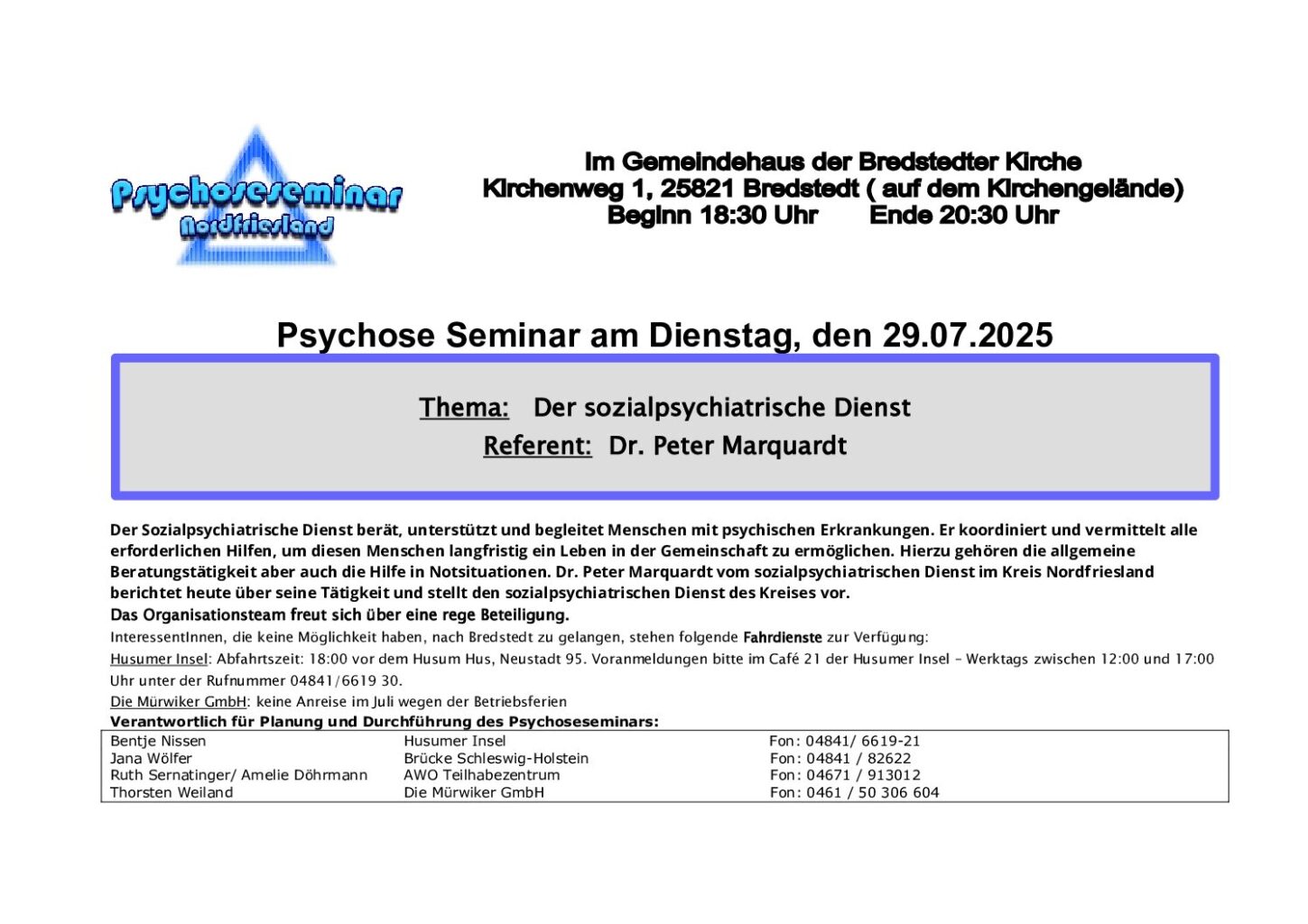 In diesem Jahr konnte das nordfrische Aktionsbündnis bestehend aus dem Kreis Nordfriesland unter Schirmherrschaft des Landrates Florian Lorenzen, der DAK-Gesundheit, der DIAKO Nordfriesland gGmbH – Husumer Insel -, der AWO Schleswig-Holstein gGmbH – Teilhabezentrum Bredstedt, der Bücke Schleswig-Holstein gGmbH und dem Eckhus viele Partner für Woche der seelischen Gesundheit vom 09.10.2025 bis 06.11.2025 gewinnen und ein eindrucksvolles Programm zusammenstellen.